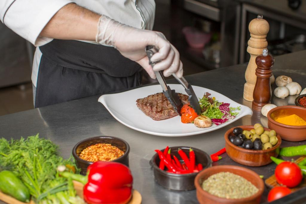 Harzige, harte Gewürze brauchen Zeit; zarte Kräuter nur kurz. Eine Za’atar-Ölinfusion über Nacht, danach frischer Sumach am Tisch: lebendige Schichten statt flacher Einheitswürze. Notiere Ergebnisse und teile sie!